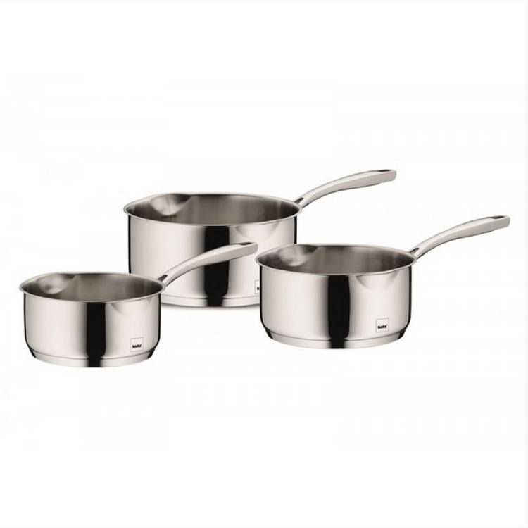 Kela Line 10200 Série de 3 casseroles inox Flavoria Kela 10200. - Acier inoxydable 18/10.Triple fond à économie d'énergie.Diamètres : 16, 18 et 20 cm.Tous feux dont induction.Manche ergonomique inox.Graduation intérieure des capacités.Double bec verseur.