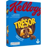 Trésor de Kellogg's goût Chocolat au Lait, c’est tout le plaisir d’un cœur fondant au bon goût de chocolat au lait dans une coque de céréales croustillante : une sensation croquante-fondante qui rend accro tous les chocovores ! Mmm, c’est un vrai Trésor pour les Chocovores !