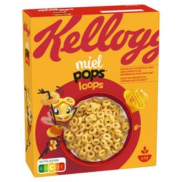 Céréales complètes au miel en forme d'anneaux, enrichies en vitamines et en fer. Au petit déjeuner, vous aimez faire plaisir à votre enfant tout en étant sûrs de lui donner une alimentation simple et équilibrée ? Faites-lui découvrir Miel Pops Cracks, l'alliance de 4 céréales complètes (avoine, blé, orge et seigle) et d'une touche de miel, le tout en forme d'anneaux pour un maximum de croquant. Avec Miel Pops Cracks, un produit laitier et un fruit, donnez à votre enfant un petit déjeuner simple et équilibré, qui croque et qui craque ! Il n'y a vraiment que Pops l'abeille et ses amies de la ruche qui sont capables de faire de si bonnes céréales ! Les céréales Miel Pops Cracks ont tout pour bien commencer la journée : - Une combinaison de glucides, - Riches en vitamines du groupe B et D, - Riches en calcium, - Riches en fer, - Riches en fibres.