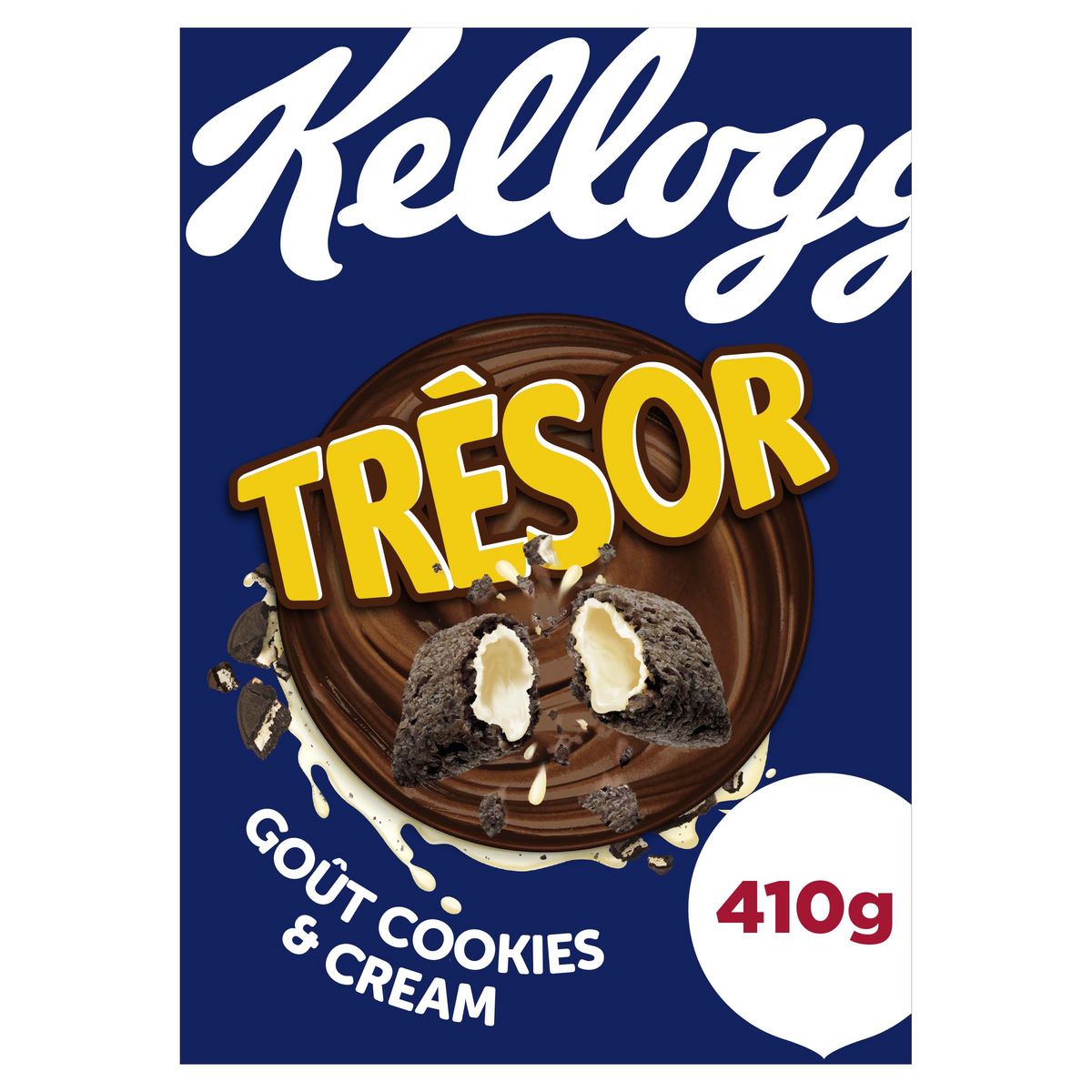Découvre Cookies & Cream, le nouveau goût trop crazy* de Trésor. Trop bon ! Tout le plaisir d'un délicieux cœur fondant dans une céréale croustillante au bon goût de cacao. Retrouve le goût cookies & cream que tu adores au petit déjeuner ! *trop fou