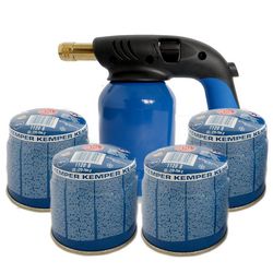 Lampe a souder Coque Acier Allumage piezo + 4 Cartouches de gaz 190gr STOP GAZ Perçables KEMPER