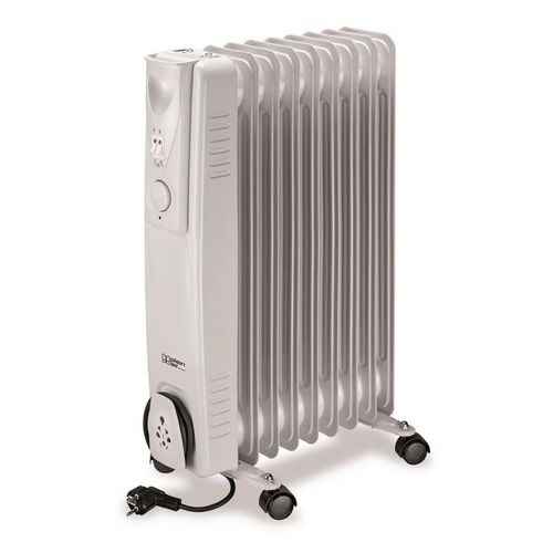 Radiateur à bain d'huile holly Kemper. Avec huile minérale à haut rendement. Thermostat réglable et de sécurité (anti-surchauffe). Interrupteurs lumineux pour signaler le fonctionnement. Poignée avant anti-brûlure. Support enrouleur de câble. Roues pivotantes à 360°. Convection naturelle 9 éléments chauffants.