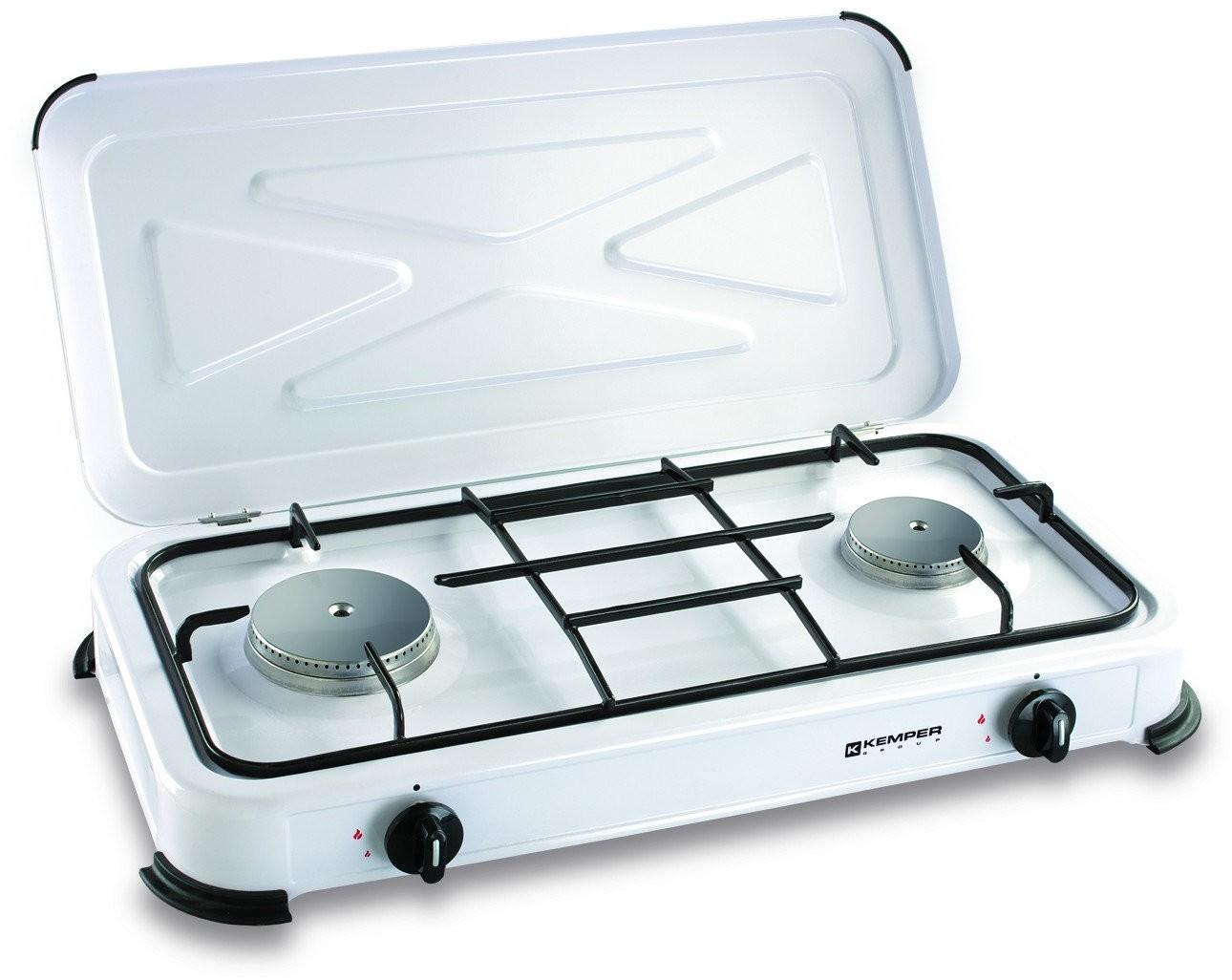 Kemper 104981 Réchaud à gaz 2 feux Kemper 104981 - Réchaud stable et robuste avec couvercle et grille amovible pour un nettoyage optimal. Les bruleurs sont solidement fixé pour permettre un transport confortable même en camping.- Alimentation : gaz (butane, propane).- Brûleurs acier inox. - type de