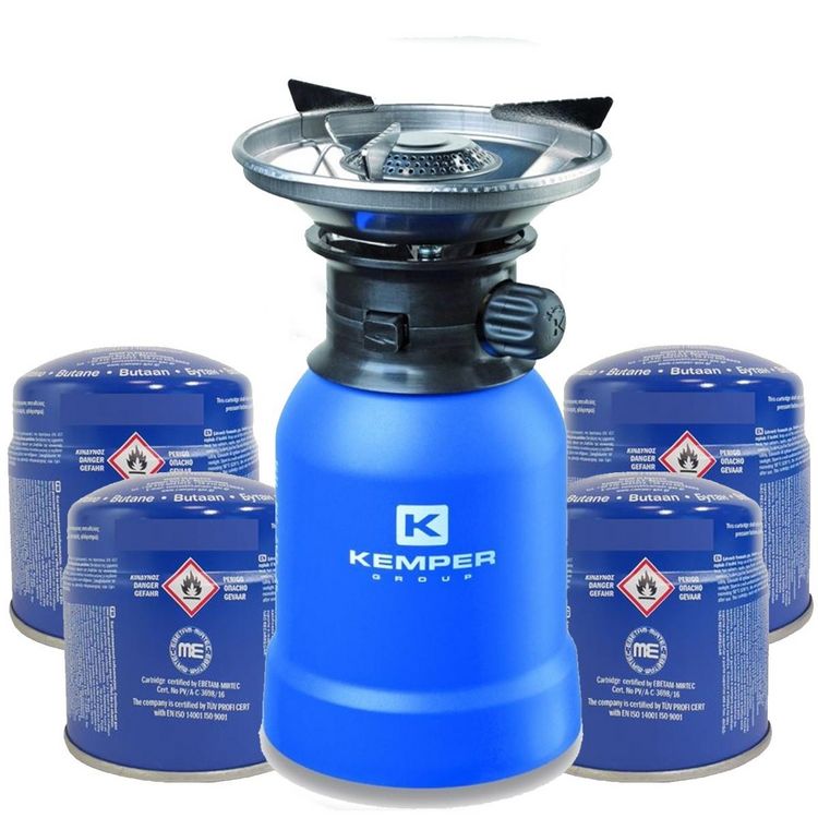 Réchaud gaz 2200W Coque ABS Piezo + 4 cartouches de gaz 190gr KEMPER