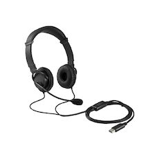 Découvrez le casque audio Kensington K33065WW avec connexion USB-A, offrant un son stéréo de haute qualité grâce à ses haut-parleurs de 40 mm. Ce casque est conçu pour un confort optimal avec son arceau ajustable et rembourré ainsi que ses coussinets en mousse enrobée de similicuir. Il intègre un mi