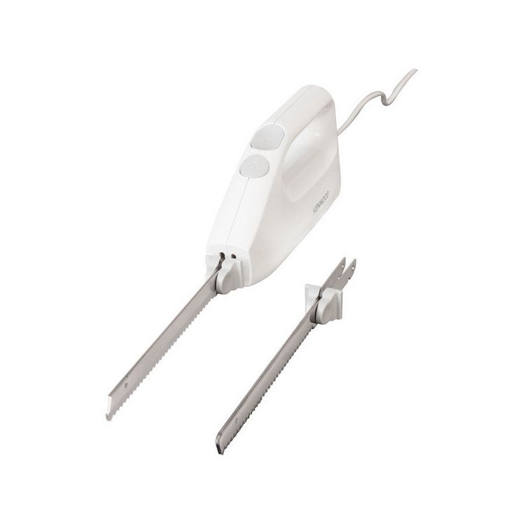 Couteau électrique doté de 2 jeux de lames pour s'adapter à tous les besoins, notamment pour les produits surgelés. Idéal pour réussir des tranches régulières le tout sans effort. Les lames sont en acier inoxydable auto-affûtantes. Bouton d'éjection des lames pour travailler en toute sécurité. Lames compatibles lave-vaisselle. Matériau du corp en plastique.