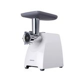 Kenwood MG360 Hachoir à viande KENWOOD MG360, doté d'un moteur 1400 W, est fourni avec 3 grilles en acier (gros, moyen, fin) qui offrent la possibilité de réaliser de nombreuses préparations à base de viande, de volaille, ou encore poisson. 2 adaptateurs à saucisses et 1 adaptateur à Kebbes. Il est