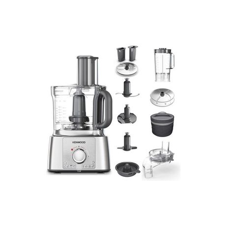 | Accessoires | blender, boîte de rangement des accessoires, couteau hachoir, couteau pétrin/concasseur, couvercle anti-projections, disque(s) éminceur, disque(s) râpeur, emulsionneur, fouet, lame de pétrissage, mélange délicat, mini bol, poussoir, presse-agrumes, spatule | |