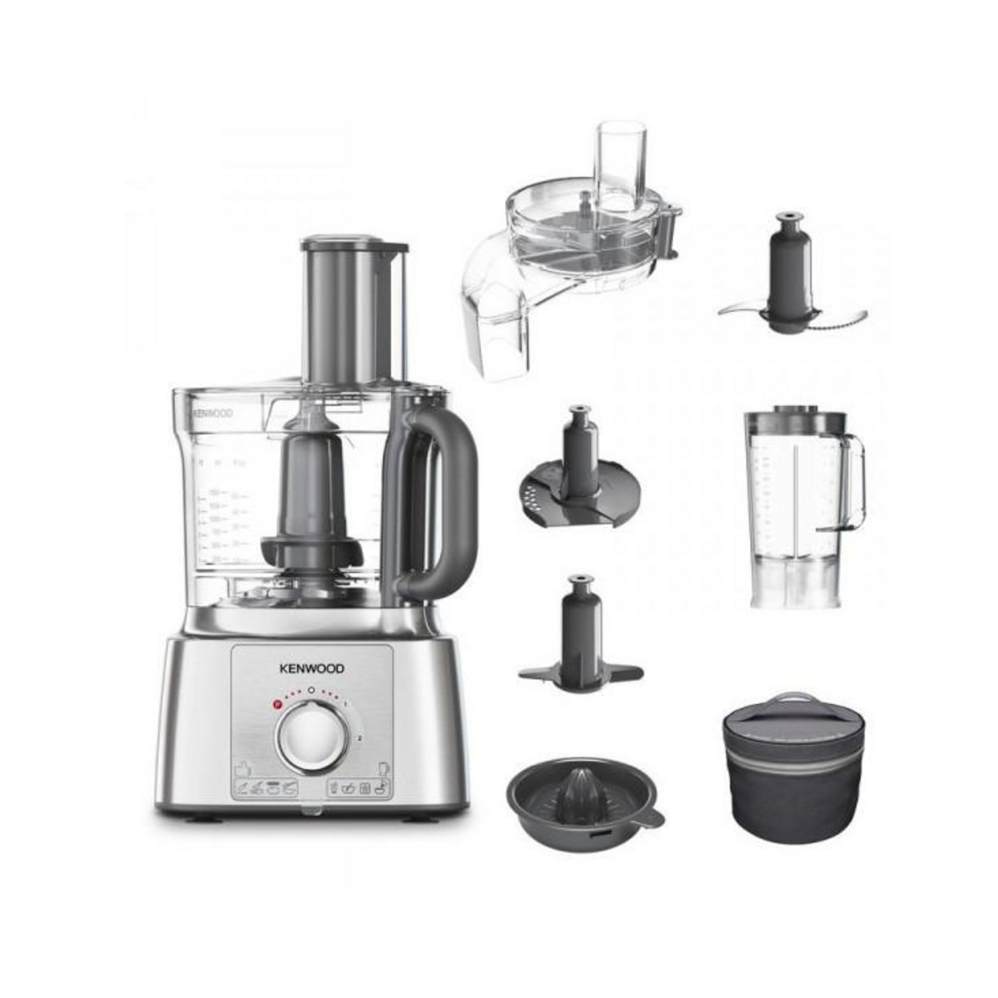 Kenwood FDP65590SI Robot multifonctions MultiPro Express Kenwood FDP65590SI. Un robot multifonction compact avec un bol d'une capacité familiale de 3 L pour préparer des repas généreux au quotidien !. Véritable innovation et unique sur les robots multifonction, le couvercle Express Serve permet de râper et émincer en illimité à l'extérieur du bol !. Les nouvelles lames micro-crantées offrent des résultats de coupe précis et réguliers. Pour cuisiner en toute simplicité, il est doté de 2 vitesses et d'une touche Pulse. Complet, il est livré avec le couvercle Express Serve, un blender acrylique de 1.5 L, des couteaux en acier inoxydable, 2 disques réversibles pour râper et émincer (2 et 4 mm), un presse-agrumes, un disque émulsionneur, un pétrin, une housse de rangement et une spatule.
