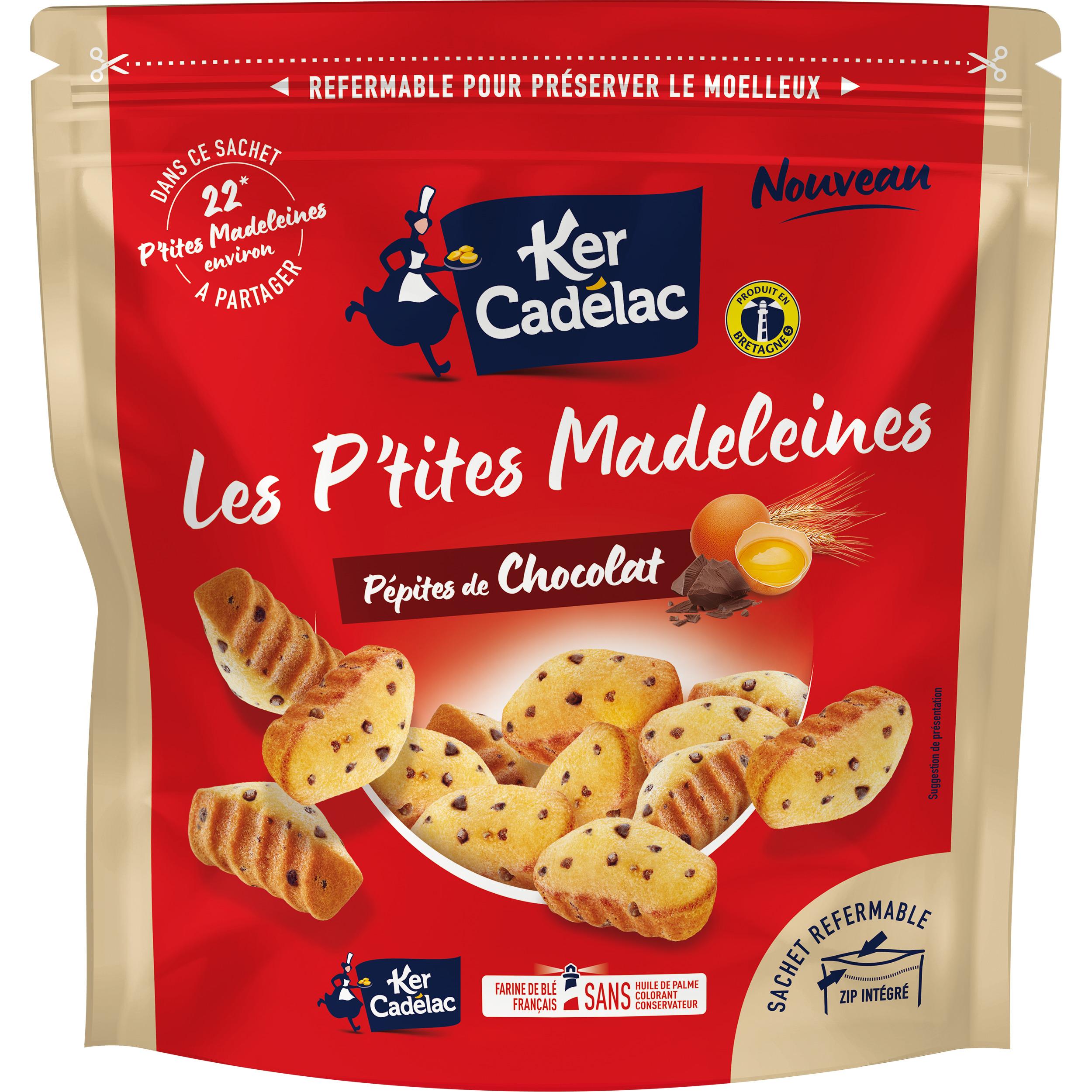 Les P'tites Madeleines Ker Cadélac : un concept inédit ! Une recette gourmande et une texture moelleuse le tout dans un sachet fraîcheur pratique de la farine de blé français, sans huile de palme, sans colorant ni conservateur. Des pépites de chocolat pour les plus gourmands ! Un emballage pratique qui s'ouvre et se referme grâce à son Zip et qui permettra de conserver la fraîcheur des madeleines. 22 madeleines aux pépites de chocolat dans le format 363g.