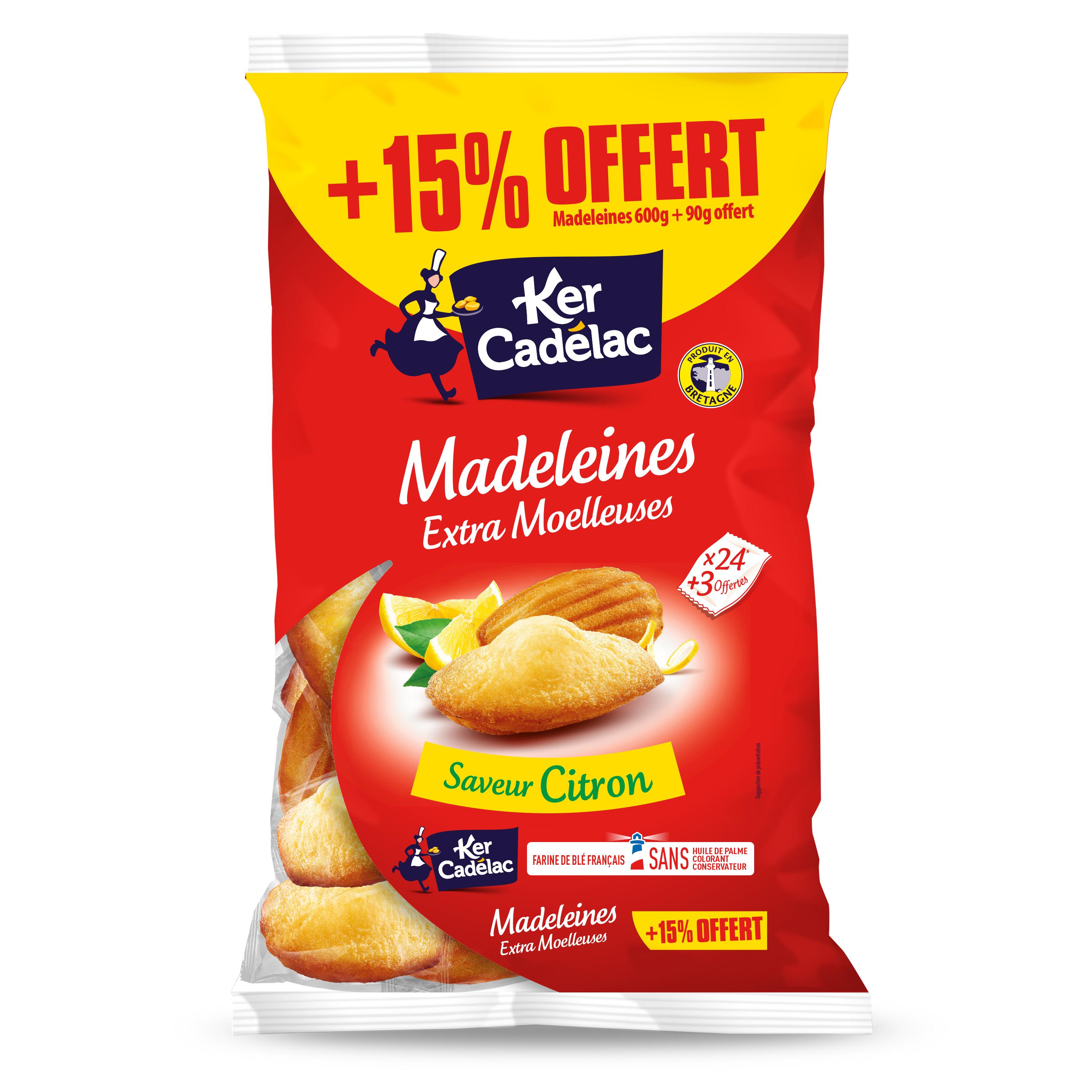 La douceur des Madeleines extra moelleuses Citron Ker Cadélac va séduire petits et grands! Très pratique, leur sachet fraîcheur vous permettra de les emmener partout pour un goûter savoureux et gourmand. Elles seront également idéales pour partager un petit déjeuner en famille.