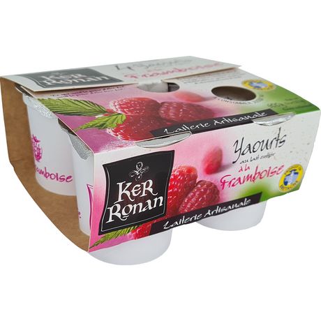 LAIT entier 75,5% ( origine: France, Morbihan), framboise 11,1% ( brisure et pulpe), sucre , LAIT écrémé en poudre, ferments lactiques du yaourt, amidon, gélifiant : pectine, arôme naturel, conservateur du fruit : sorbate de potassium.