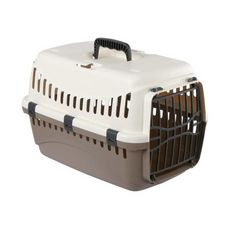 Box de transport Expedition pour chien de KERBL - En PVC de haute qualité - Avec dispositif pour ceinture de sécurité automobile - Dimensions : 48 x 32 x 32cm - Coloris : creme et taupe.