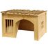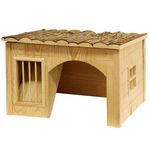 La maison mesure 43 x 34,5 x 27 cm (L x I x H) et est faite de bois naturel. Grace au support de foin inclus, le foin sera stocke proprement et fournit un endroit d'alimentation facile a atteindre pour votre animal de compagnie. Elle offre beaucoup d'espace pour jouer, manger ou se reposer.