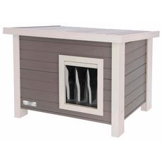 La maison pour chat Eli ECO avec porte a rabat de Kerbl offre a votre chat un endroit prive et sur pour dormir et se detendre a l'exterieur !