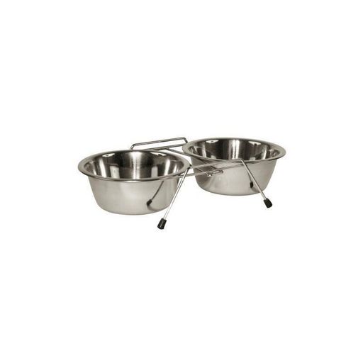 Support double avec deux gamelles inox - Contenance : 900ml chacune - Pour chien.