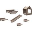 Le kit de 6 pieces MONTE BALDO est idéal pour les petits appartements ou pieces. Il comprend une vaste niche pour se blottir (38 x 38 x 45 cm) et deux marchepieds pour aider a la montée, toutes les autres parties étant revetues de peluche douce 100 % polyester.