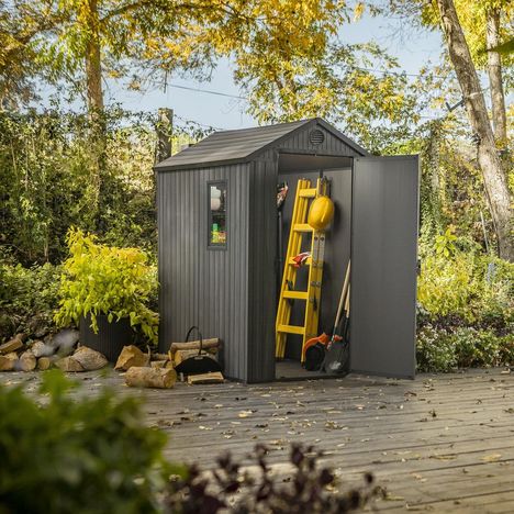 L'abri de jardin en résine Darwin 46 est à monter sur un sol à niveau