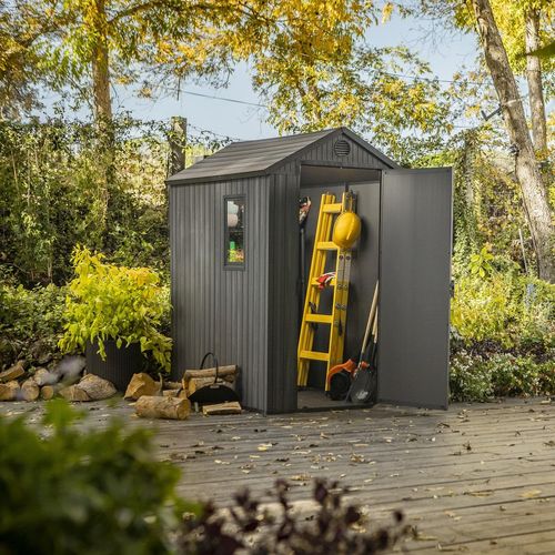 Grâce à cet abri en résine robuste, résistant et ventilé son contenu restera au sec toute l'année.