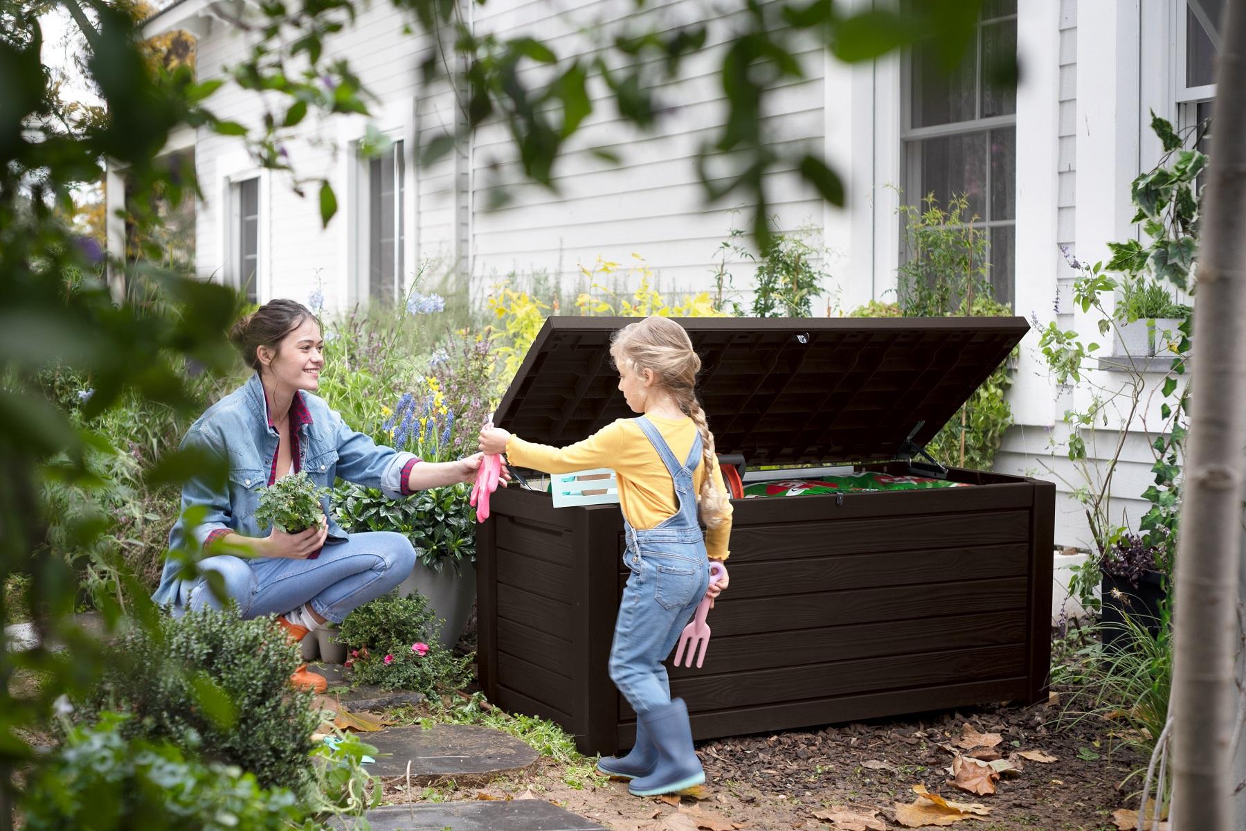 je cherchais un bac de rangement relativement grand , solide et étanche pour y mettre tous les coussins des salons de jardin , bains de soleil , dans une couleur autre que le gris Cette marque m'a toujours satisfaite , premier bac rangement poubelle et bouteilles de gaz en extérieur datant d'une dizaine d'années , toujours utilisé et en très bon état .