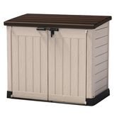 Coffre de grande dimension, montage facile, assemblage résistant avec visserie, étanche même en cas d'averse.