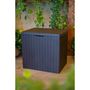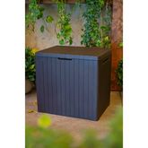 La boîte de rangement de jardin City de la marque Keter arbore un aspect de bois attrayant, mais elle est fabriquee en plastique durable, resistant aux intemperies et necessitant peu d'entretien.