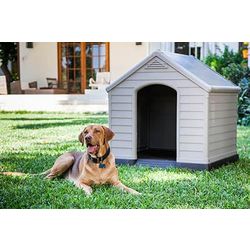 Cette niche pour chien en résine beige et marron gardera votre animal de compagnie au sec et à l’abri des intempéries tout au long de l’année. Son plancher surélevé permet une meilleure isolation et évite l’accumulation d’humidité.