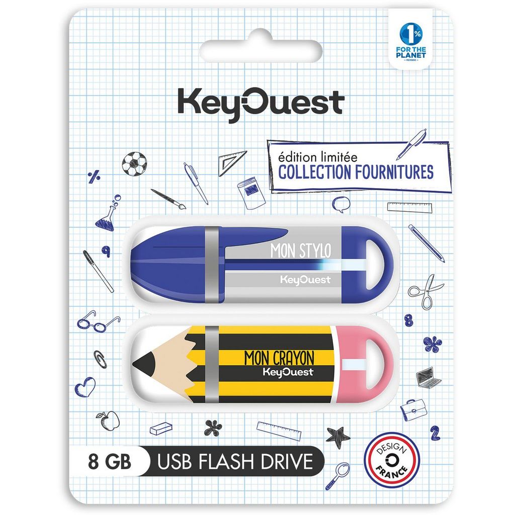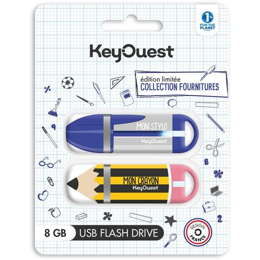 Clé USB 2x8Go Crayon Papier et Stylo bleu