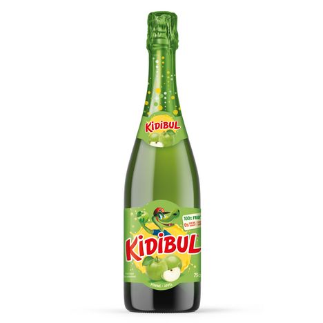 KIDIBUL est un jus de pomme gazifié 100% naturel sans conservateurs, sans sucre ajouté. Il est disponible en bouteille 75 cl et canette 25 cl pour se désaltérer ou juste se faire plaisir quelle que soit l’occasion.