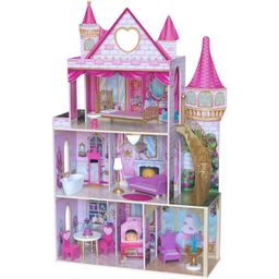 Inventez une multitude d'histoires de petites princesses et princes, avec le château Rose Garden de KidKraft. Le château est composé d'une salle de trône, d'une cuisine avec un four traditionnel, d'un salon avec cheminée, d'une grande baignoire ronde parfaite pour faire des coquetteries et d'une chambre royale avec un lit en or.