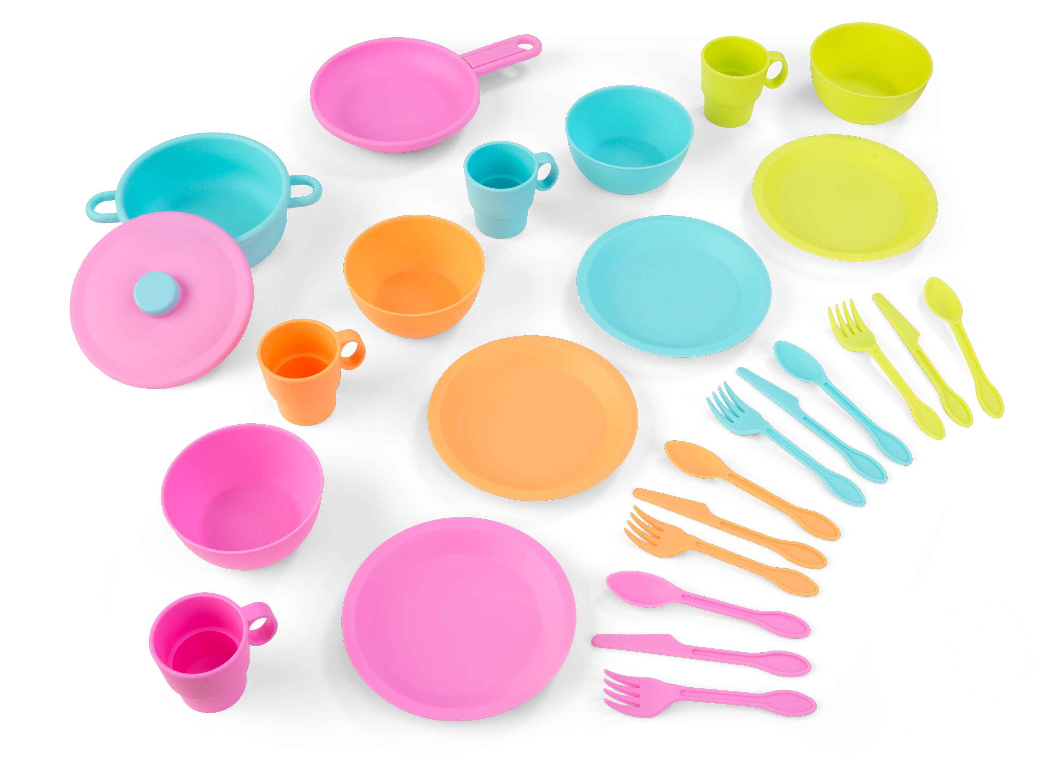 L'ensemble d'ustensiles couleurs vives de 27 pièces permet aux enfants de cuisiner tout en s'amusant !