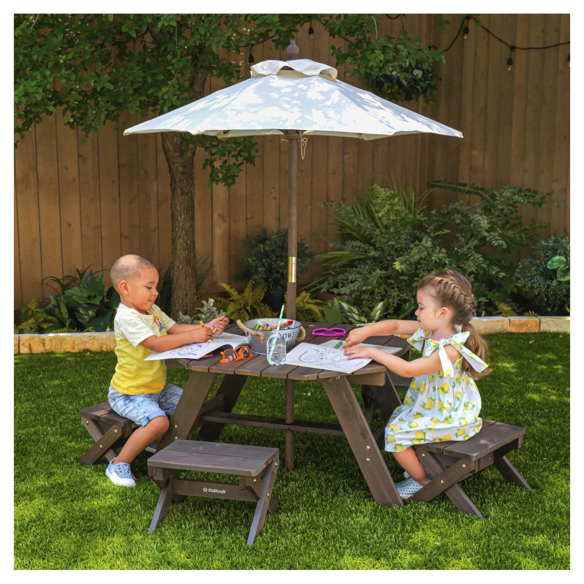 Ensemble table et bancs de jardin en bois pour enfant Octagon avec parasol