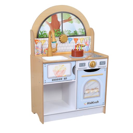 En savoir +Tous les jours peut être une fête avec KidKraft Let's Celebrate ! Cette cuisine de jeu en bois pour enfants dispose d'une toile de fond de fenêtre tournante pour transformer une belle vue extérieure en une atmosphère de fête, avec un arc-en-ciel de ballons de différentes formes. Ainsi, en un clin d'œil, les enfants peuvent organiser une fête surprise pour quelqu'un de spécial.