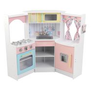 Avec cette jolie cuisine De Luxe Kidkraft à l'allure vintage, votre enfant va devenir un vrai petit chef ! Avec ses couleurs vives et ses nombreuses fonctions, cette cuisine te permettra de jouer des heures et de préparer de bons petits plats ! Cette cuisine est ultra-réaliste avec ses nombreux équipements : elle dispose d'un réfrigérateur, d'un congélateur, d'un micro-onde, d'un four et d'un lave-vaisselle. Il y a également un évier avec une robinetterie qui tourne et de nombreux rangements.