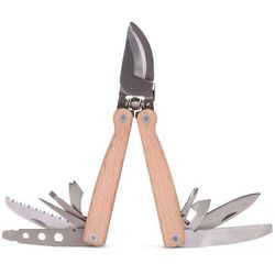 Multi-sécateur de poche Sécateur de jardin multi-fonctions. Ce canif complet comprend plusieurs fonctions très utiles, notamment pour votre jardin : sécateur, lame de scie, lame de couteau, lime, règle, 2 embouts de tournevis : plat et cruciforme, clé à écrous 3 tailles, poinçon, décapsuleur, ouvre-boîte. Matériaux : acier inoxydable, bois de hêtre. Dimensions du canif fermé : 3,6 x 14 x 2,3 cm. Ouvert : 7,4 x 16 x 2,3 cm