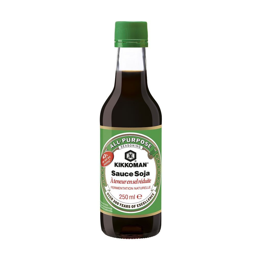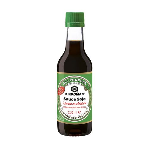 Vous l'aimez avec un peu moins de sel ? Notre sauce soja à teneur réduite en sel est sans aucun doute le bon choix. Un procédé de fabrication spécial réduit sa teneur en sel de près de la moitié. Une solution optimale pour tous ceux qui attachent une grande importance à une alimentation réduite en sel.