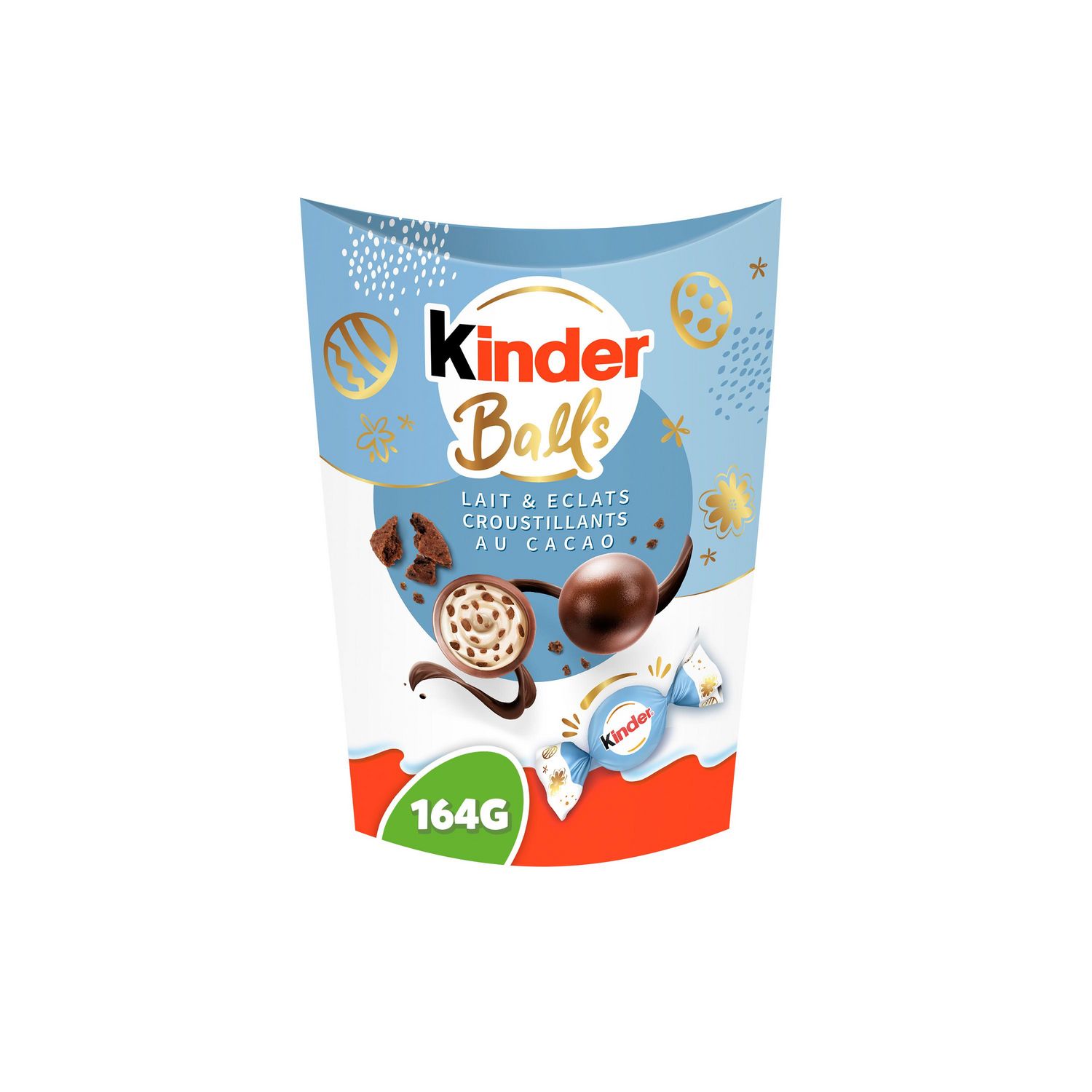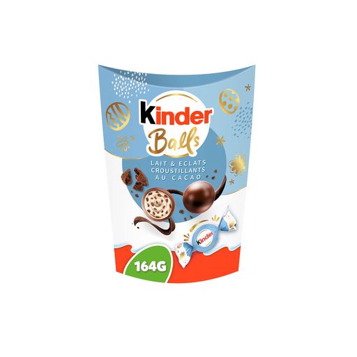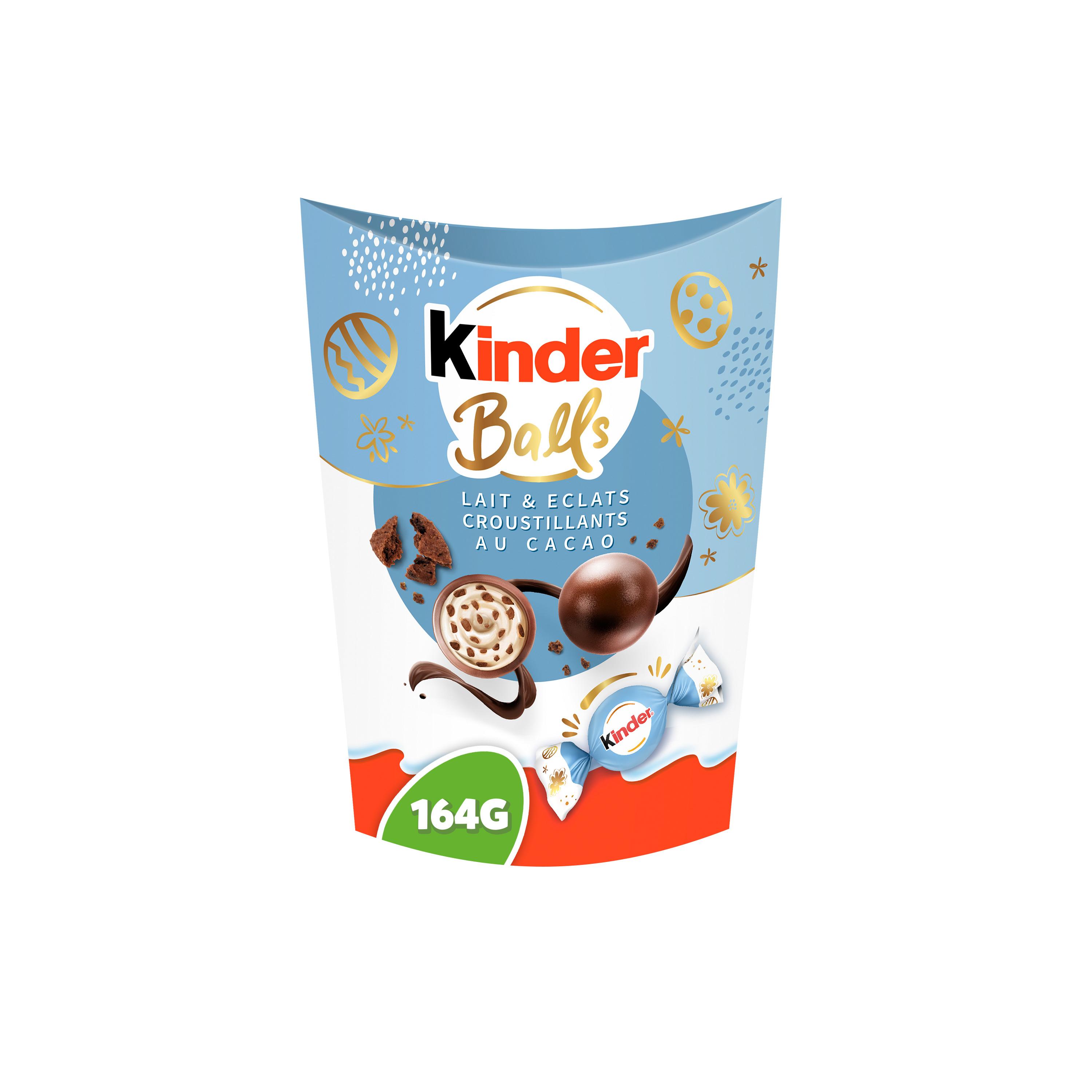 Faites plaisir à vos sens avec les Kinder Balls, fourrés au lait avec des éclats de biscuits cacaotés et enrobés d'un délicat chocolat au lait. Des bouchées extrêmement onctueuses et étonnamment croustillantes