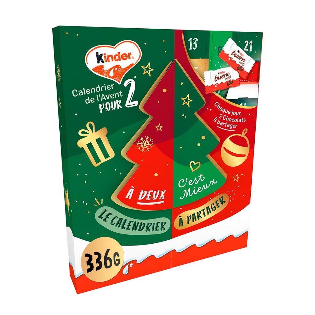 Kinder bueno mini : Fines gaufrettes enrobées de chocolat au lait, fourrées lait et noisettes. Kinder mini eggs lait et noisettes : Petits oeufs de chocolat supérieur au lait avec fourrage lait et noisettes. Kinder & Love mini : Chocolat supérieur au lait avec fourrage au lait. Kinder country : Barre céréalière enrobée de chocolat supérieur au lait. Kinder Tronky : Gaufrette croustillante au cacao avec fourrage au lait 55% avec éclats de biscuits 13,5% et une fine couche de chocolat supérieur