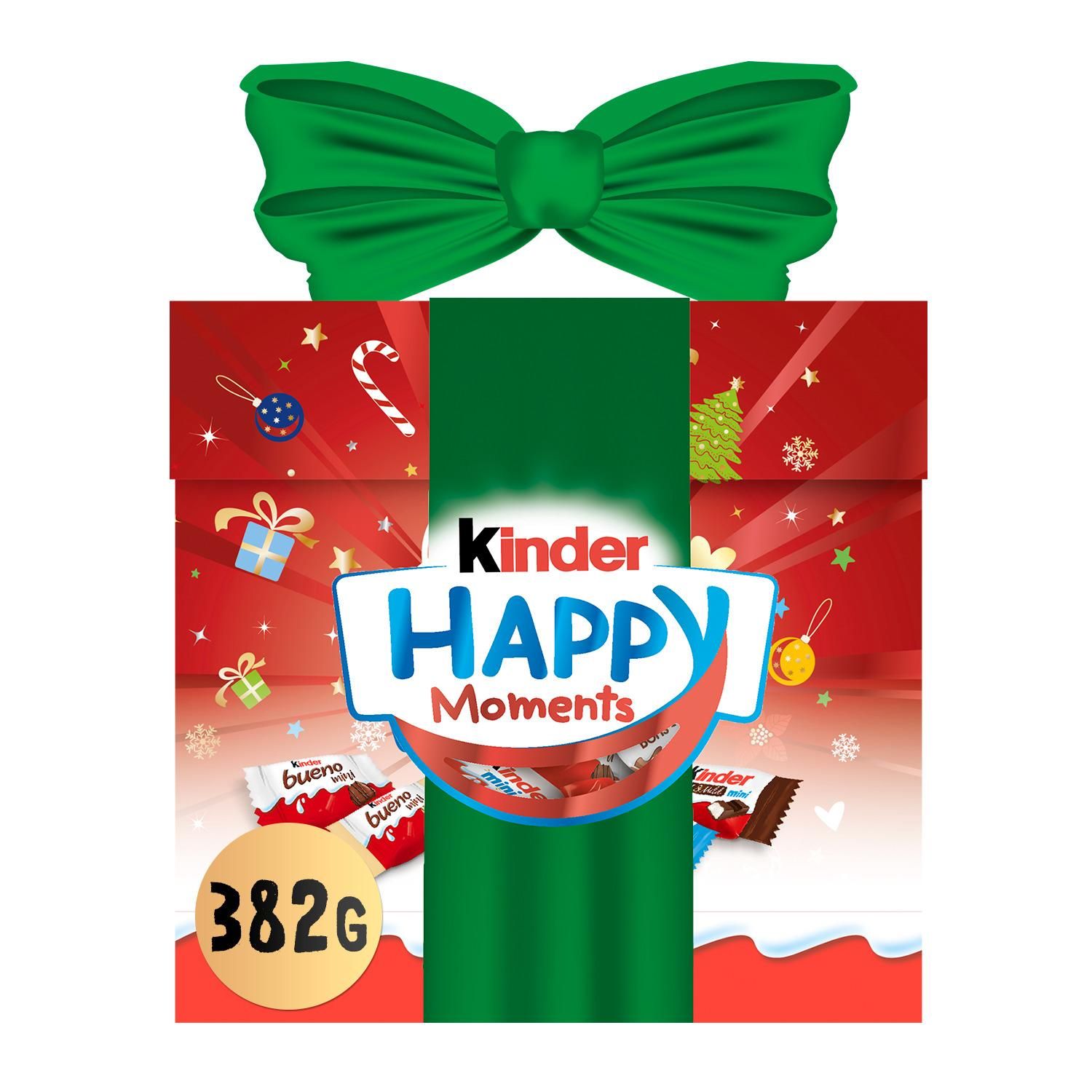 Kinder Happy Moments arrive en format ballotin et se fait tout beau pour Noël avec un nouveau design festif imaginé spécialement pour les grands gourmands. Partagez ce mix de vos minis Kinders préférés avec vos proches et vos amis pour rendre le moment encore plus festif et délicieux. Composition : 9 Kinder Chocolat Mini, 6 Kinder Mini Dark&Mild, 6 Kinder Bueno Mini, 4 Kinder Bueno White Mini, 7 Kinder Schoko-Bons.