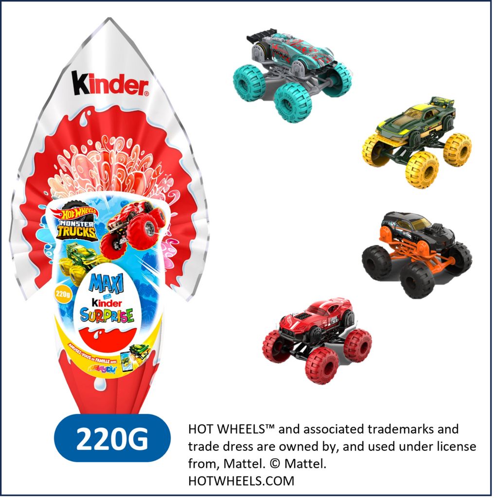 A Pâques, les œufs flammes Maxi Kinder Surprise c'est le cadeau idéal pour satisfaire les enfants, retrouver le bon goût du chocolat Kinder et toujours une maxi surprise.