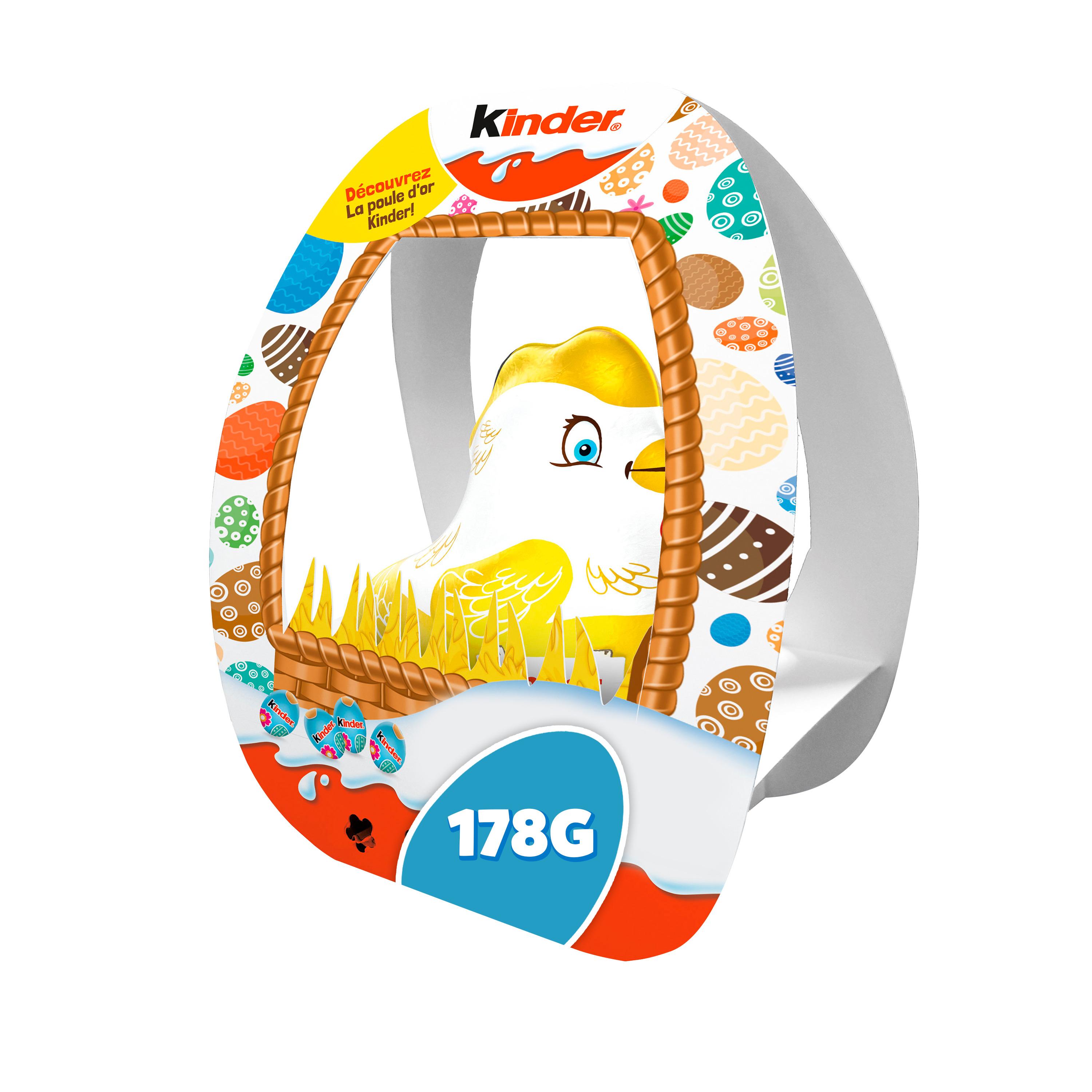 Kinder figure : Confiserie en forme de figurine recouverte de chocolat au lait. Kinder mini eggs lait : Petits œufs de chocolat supérieur au lait avec fourrage au lait