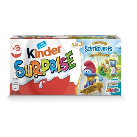 KINDER SURPRISE : Confiserie recouverte de chocolat supérieur au lait contenant une surprise dans une capsule plastique
