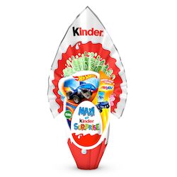 MAXI KINDER SURPRISE : Confiserie recouverte de chocolat supérieur au lait contenant une surprise géante dans une capsule plastique