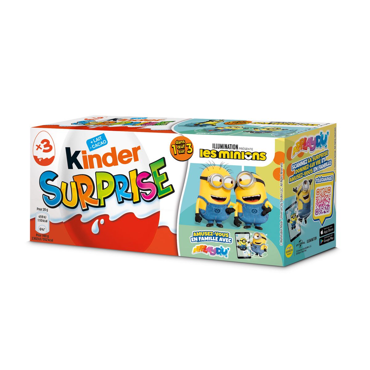 Soyez sûrs de faire plaisir à votre enfant avec KINDER SURPRISE. Un œuf unique au bon goût du chocolat KINDER avec un petit jouet à l'intérieur : effet de surprise garanti !