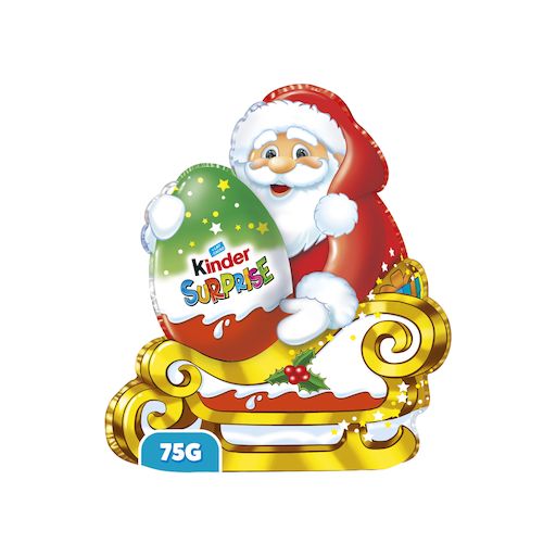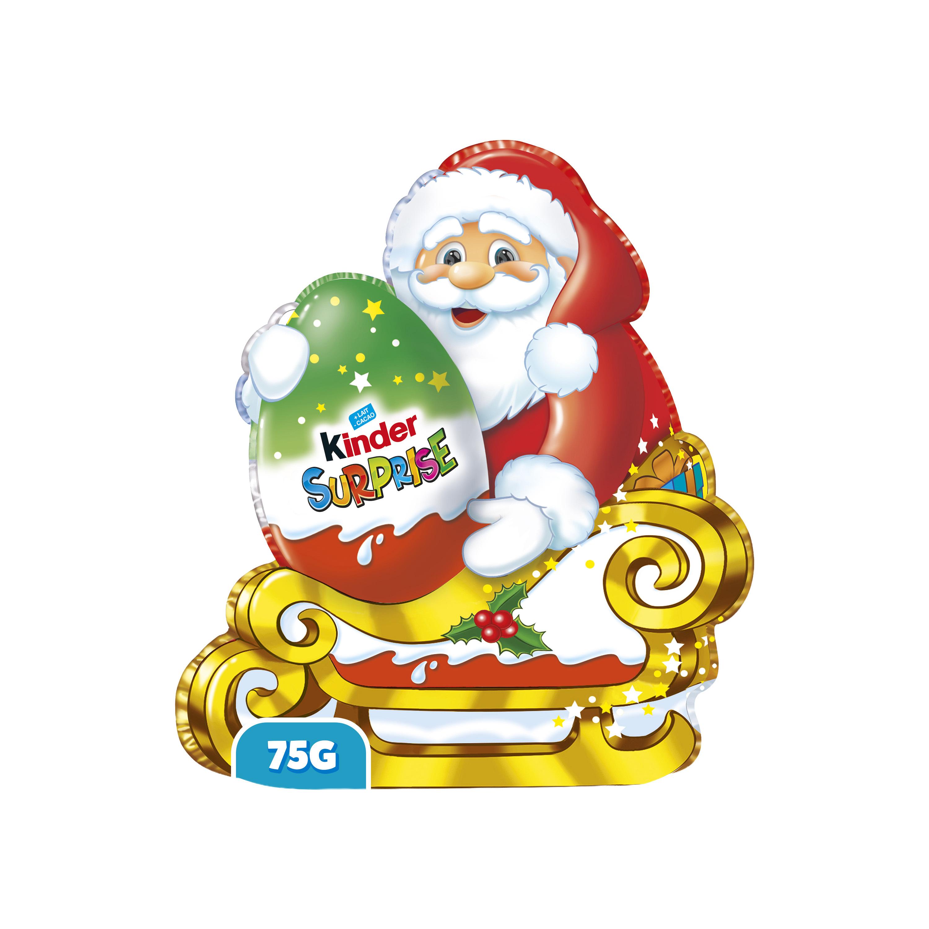 Et si vous offriez deux produits en un seul ? Le mythique Père Noël sur son traîneau au bon goût de chocolat Kinder, et une surprise de la série de Noël ! Le petit cadeau idéal, non ?
