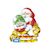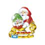 Confiserie en forme de Père Noël recouverte de chocolat supérieur au lait contenant une surprise dans une capsule plastique.