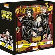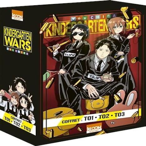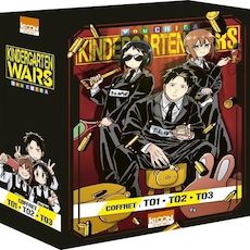 Découvrez la maternelle la plus sécurisée du monde et ses enseignants au tempérament... explosif ! Edition 2025 : Coffret des trois premiers tomes du manga. Rita est la dernière recrue du Kindergarten Black , surnommé la maternelle la plus sûre du monde , qui accueille les rejetons de l'élite du pays. La réputation de l'établissement n'est pas usurpée : ses employés sont des criminels aguerris chargés de repousser toute attaque ! Rita elle-même est une tueuse légendaire qui, en échange d'une remise de peine, a accepté ce poste hors du commun... Mais cette experte du combat ne rêve que d'amour ! Pour elle, tout assaillant est un potentiel futur copain, à condition d'être beau et, surtout, de partager ses goûts bien tranchés. Cuisine, cinéma, personnalité... chaque adversaire est mis à l'épreuve avec un quiz sans concession, où la moindre erreur est punie de mort ! Trouvera-t-elle l'âme soeur sur le champ de bataille de cette maternelle ultra déjantée ?