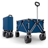Les roues tout-terrain de 10 cm de large permettent de rouler sans effort sur le sable, l'herbe, le gravier ou les chemins non pavés. Grâce aux roues avant pivotantes avec fonction de rotation à 360° et blocage des roues, vous gardez un contrôle total, même sur un terrain accidenté. La barre de poussée télescopique réglable permet d'ajuster facilement le chariot à votre taille pour un confort de conduite optimal.