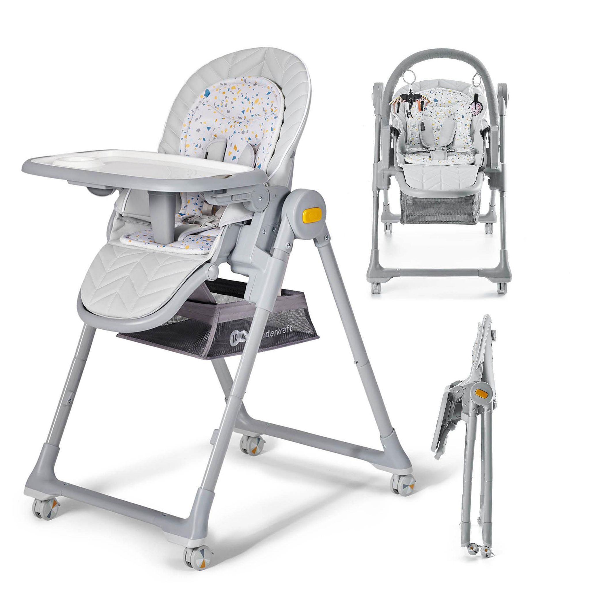 Passer du temps avec votre tout-petit sera beaucoup plus facile avec LASTREE - votre enfant pourra vous accompagner n'importe où, n'importe quand. Ceci est également possible grâce aux roues silencieuses sur les pieds de la chaise. Vous pouvez facilement déplacer la chaise d'une pièce à l'autre ! Et avec un panier pour petits objets, vous pouvez rapidement retirer une lingette pour bébé pour essuyer le visage de votre tout-petit.