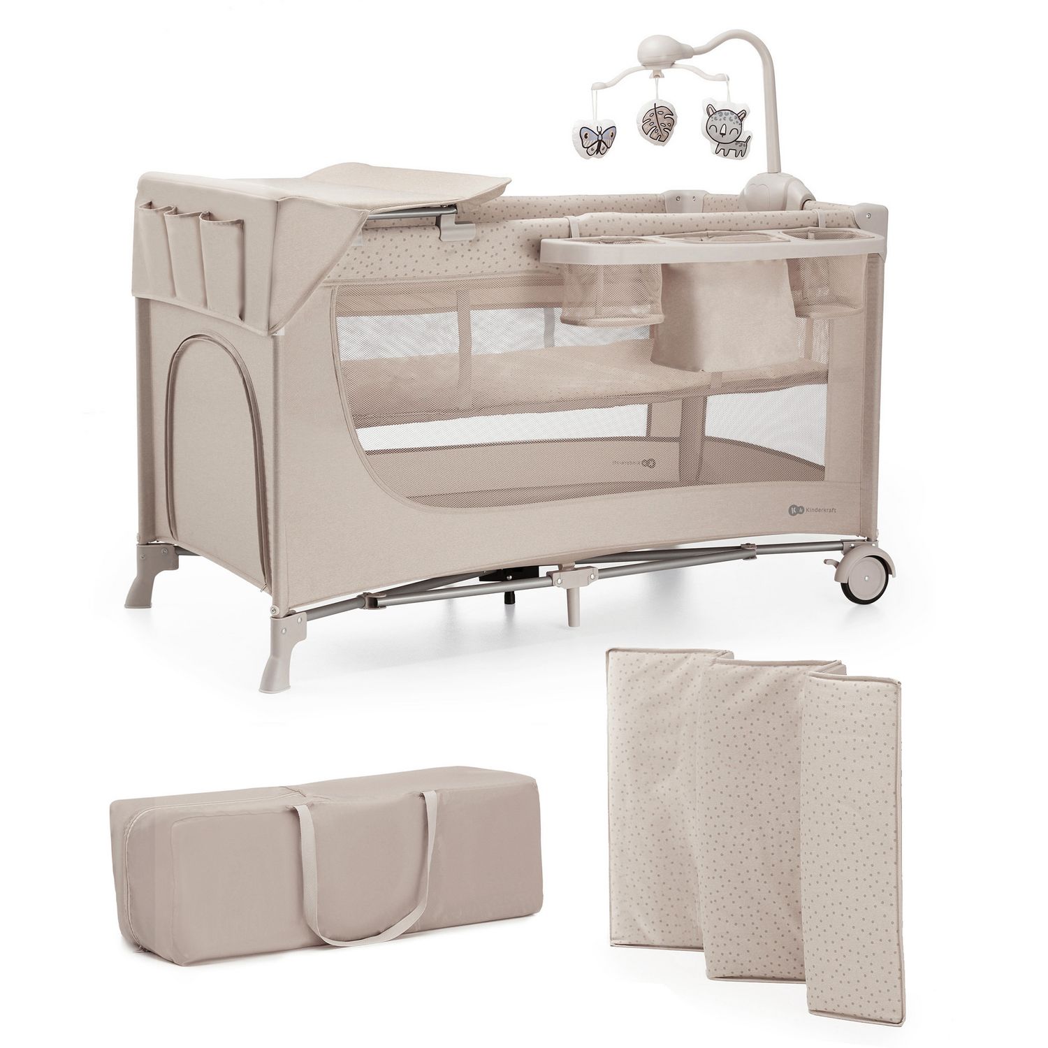 Le carrousel avec son, lumières et 3 jouets en peluche permettra à votre enfant d'exercer son attention, de se concentrer et l'encouragera à tendre les bras. Les parents seront ravis de la table à langer et de l'organisateur, qui peut être accroché sur le côté du lit : le change est désormais encore plus facile. Grâce à JOY 2, tout est à portée de main.